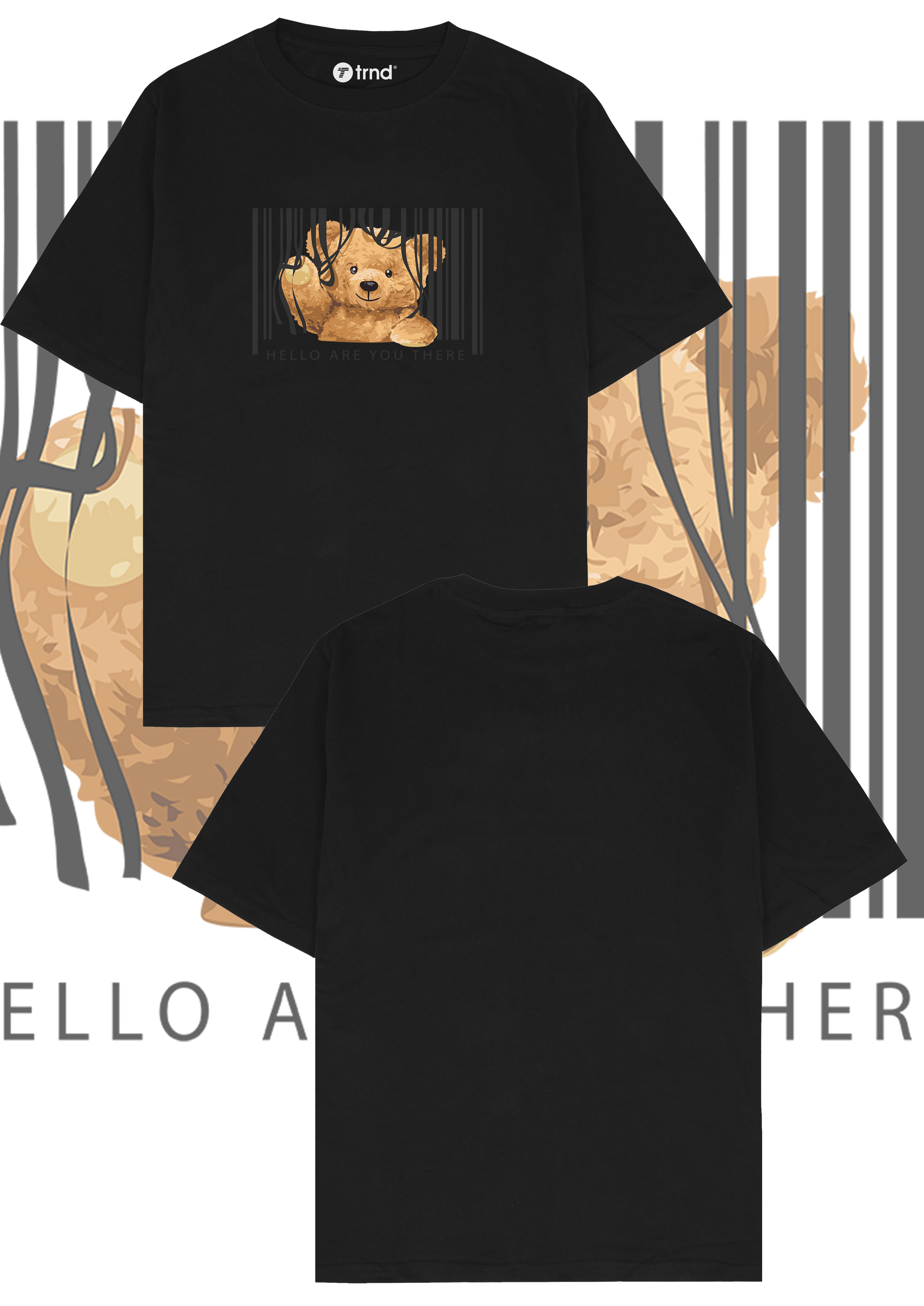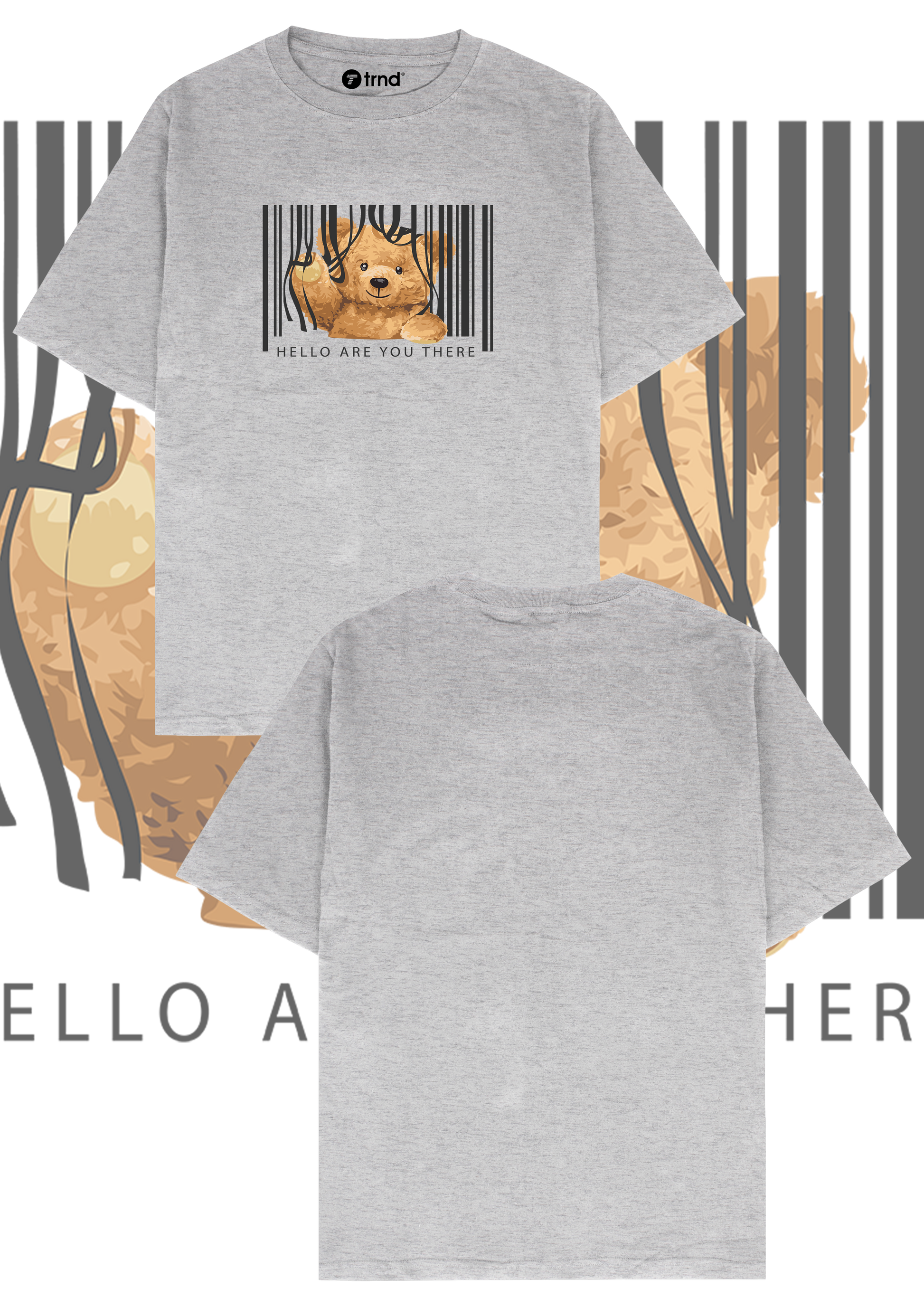 Break the barriers with this "Hello Are You There" graphic t-shirt! Featuring a teddy bear peeking out from behind barcode-like stripes, this white tee is perfect for those who love quirky, thought-provoking fashion with a playful twist. Made from soft, comfortable fabric, this unisex t-shirt is ideal for casual wear, creative outings, or as a unique gift for someone special. Available in multiple sizes, this trendy graphic tee adds a mysterious, fun vibe to your wardrobe. Shop now for this intriguing teddy bear barcode t-shirt and make a statement wherever you go!