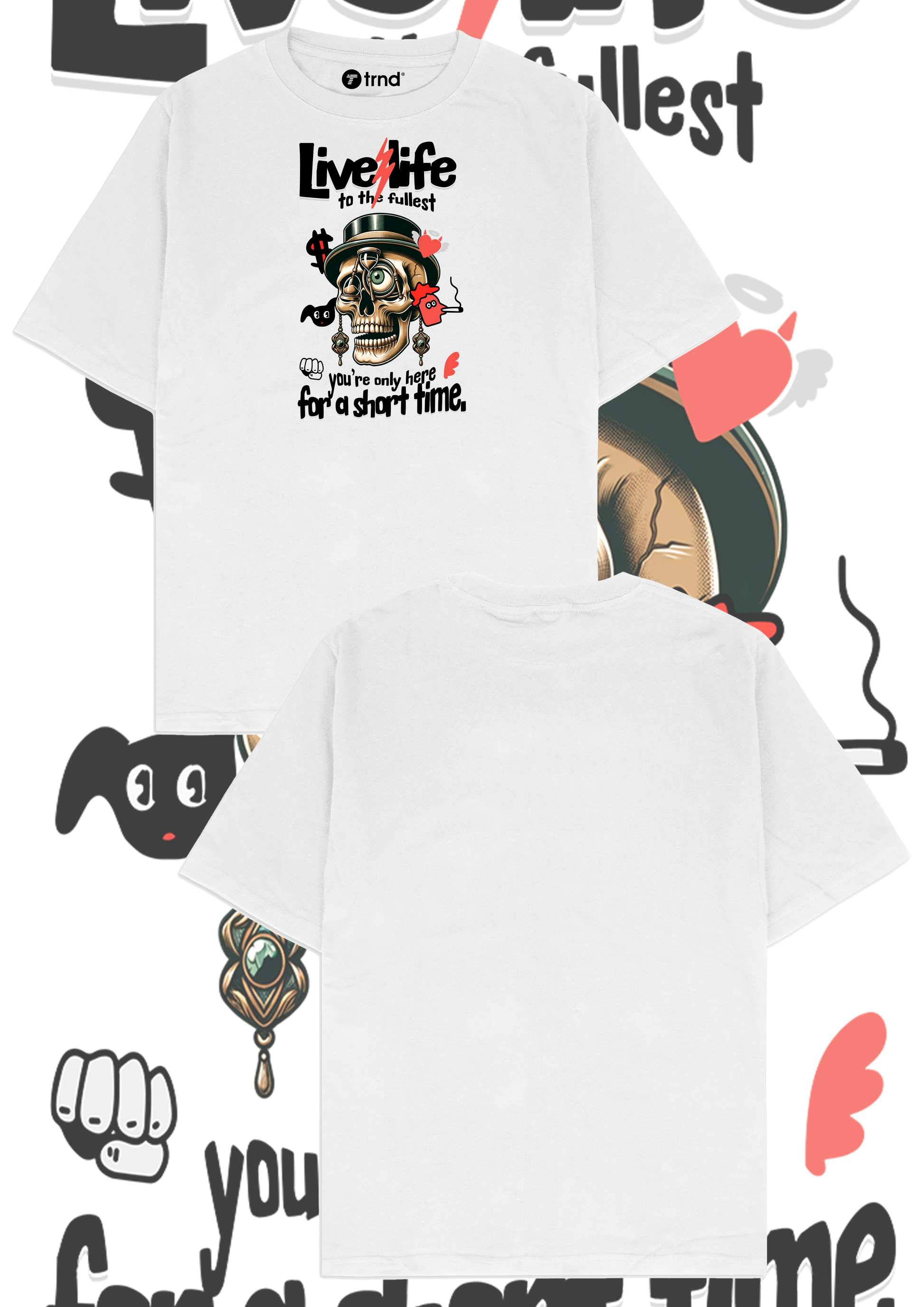 Make a statement with our LiveLife T-Shirt, featuring a striking graphic design that combines a detailed skull wearing a top hat, vibrant accents, and an inspiring message: "LiveLife to the fullest – you’re only here for a short time." Available in crisp white and sleek black, this premium short-sleeve tee is crafted from high-quality cotton for ultimate comfort and durability. Perfect for fans of edgy streetwear, urban fashion, and bold artwork, this t-shirt is ideal for casual wear, concerts, or expressing your unique style.