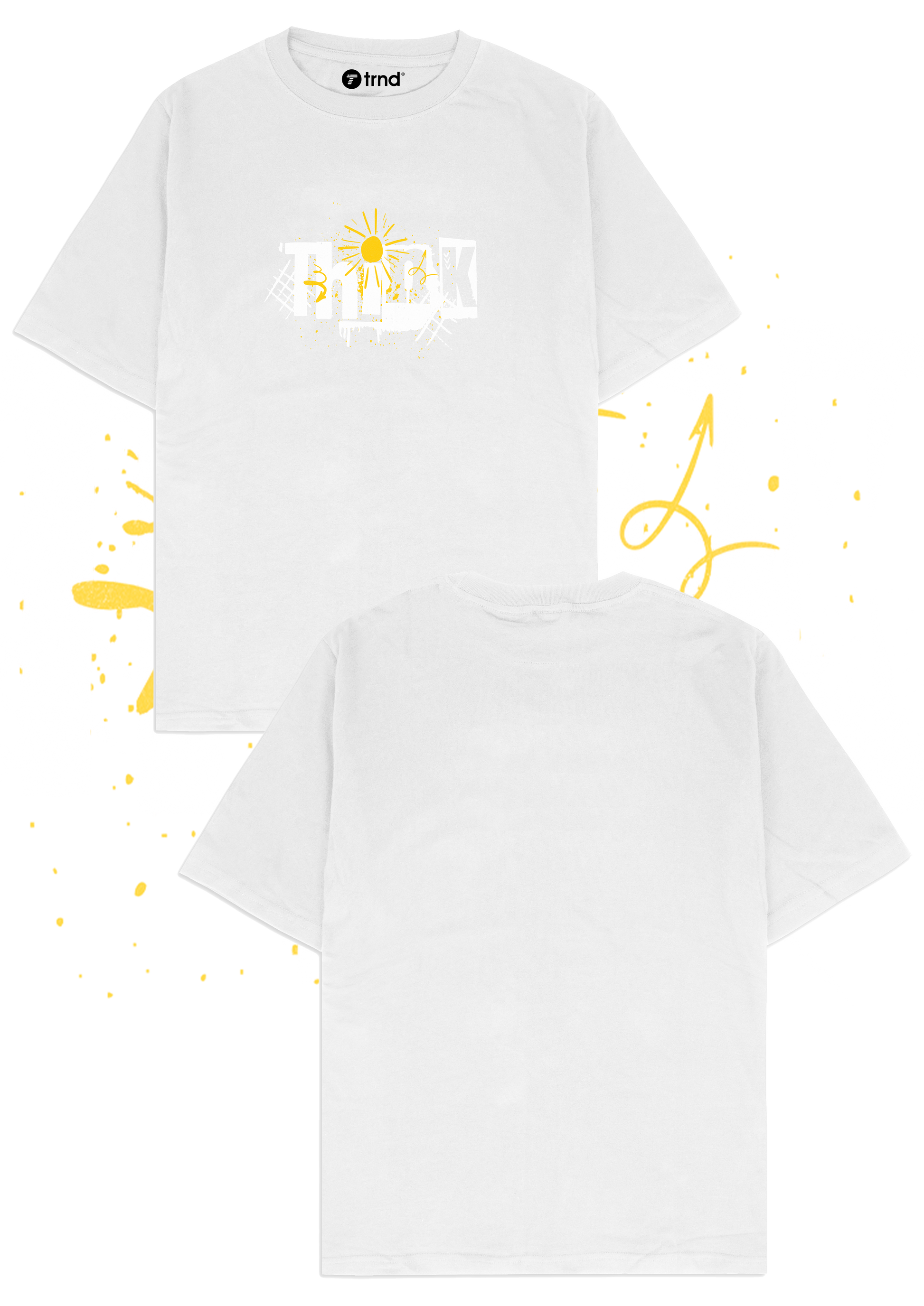 Product Description ☀️ Ignite Your Style with the Spark Sunburst T-Shirt! ⚡ Add a burst of energy to your wardrobe with TRND's "Spark Sunburst" T-shirt. This crisp white tee features an abstract design with a sunburst motif and the word "SPARK" in a dynamic, stylized font, accentuated with vibrant yellow accents. Perfect for those who love modern, artistic apparel with a touch of sunshine, this shirt brings a positive and energetic vibe to any outfit.