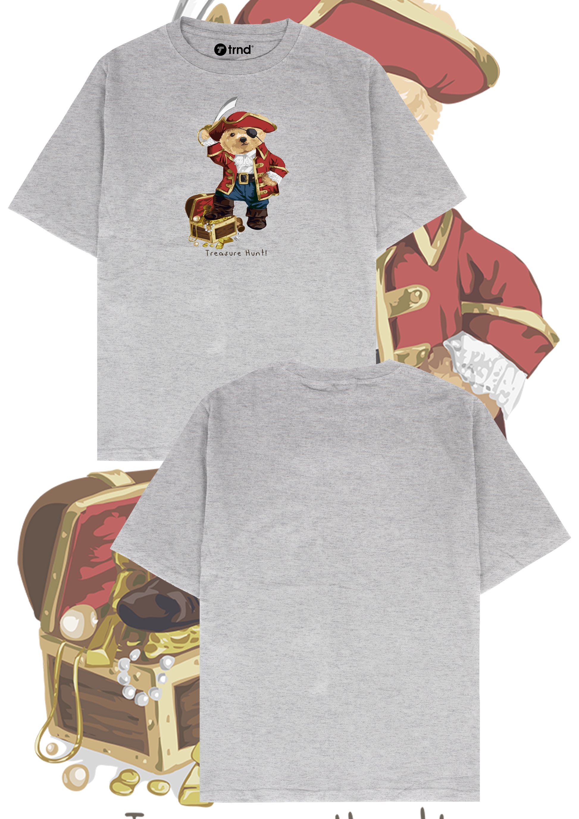 Set sail on a stylish adventure with this "Treasure Hunt" graphic t-shirt! Featuring a swashbuckling teddy bear dressed as a pirate, complete with an eye patch, hat, and a treasure chest overflowing with gold, this black tee is perfect for fans of pirate-themed fashion and whimsical designs. Made from soft, comfortable fabric, this unisex t-shirt is ideal for casual wear, themed parties, or as a fun gift for pirate lovers. Available in multiple sizes, this funny graphic tee adds a playful, adventurous vibe to your wardrobe. Shop now for this unique pirate teddy bear t-shirt and embark on your next treasure hunt in style!