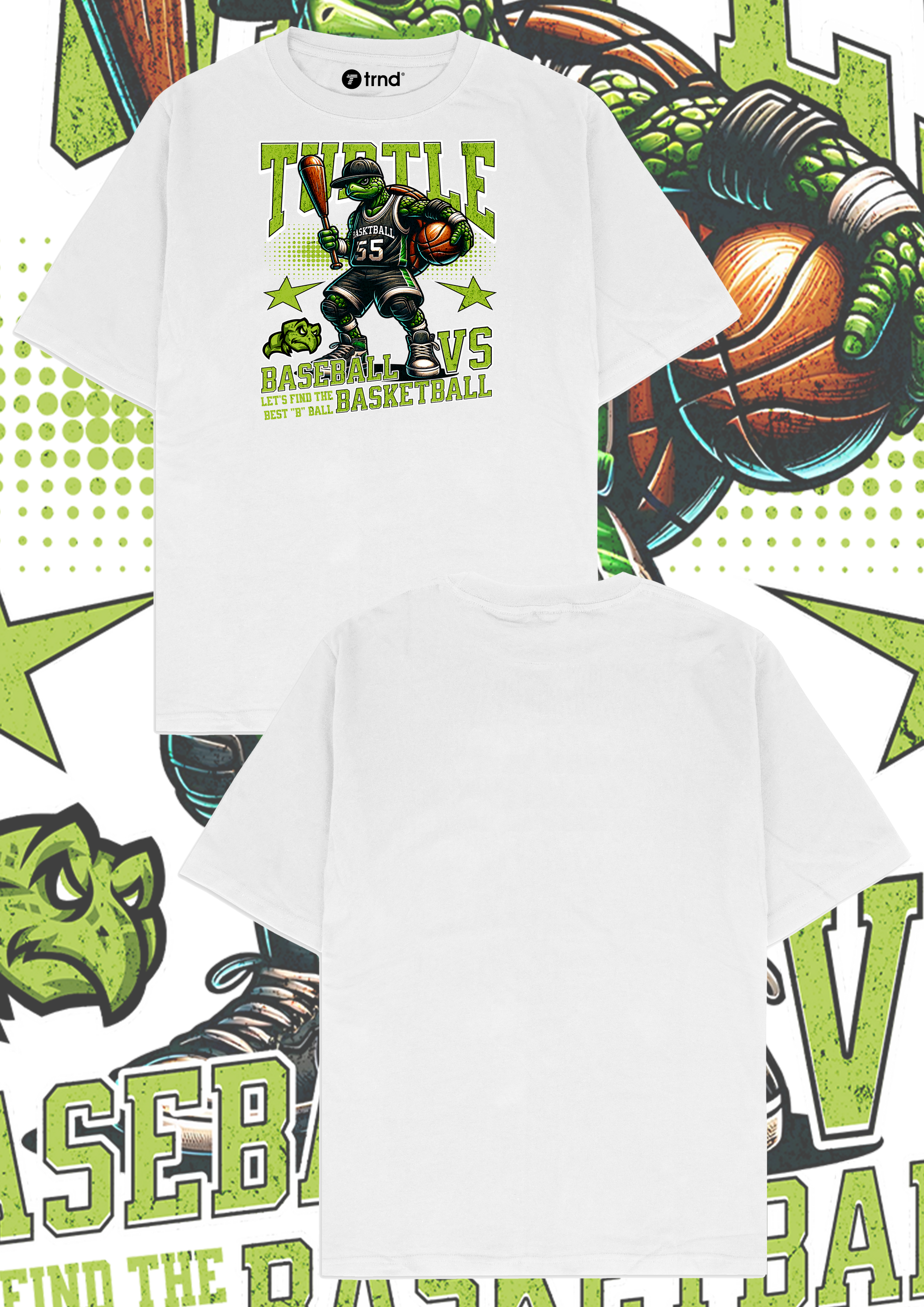 Elevate your streetwear game with this bold and vibrant Turtle Basketball vs Baseball Graphic T-Shirt. Featuring a dynamic, high-quality print of a sports-loving turtle, this tee is perfect for basketball and baseball fans alike. Made from premium cotton, it offers ultimate comfort and durability. Whether you're hitting the court, chilling with friends, or making a style statement, this unique graphic tee is a must-have.