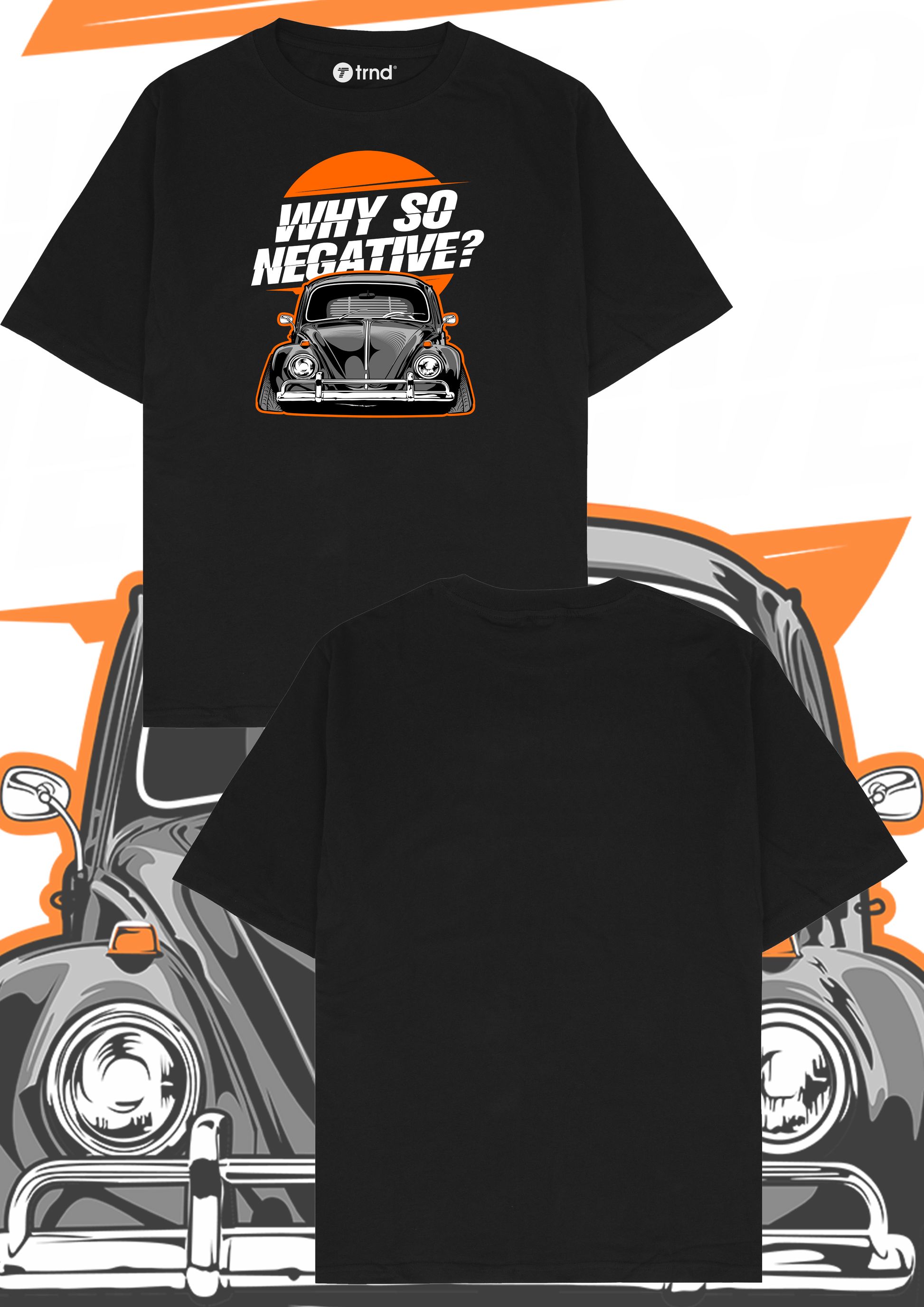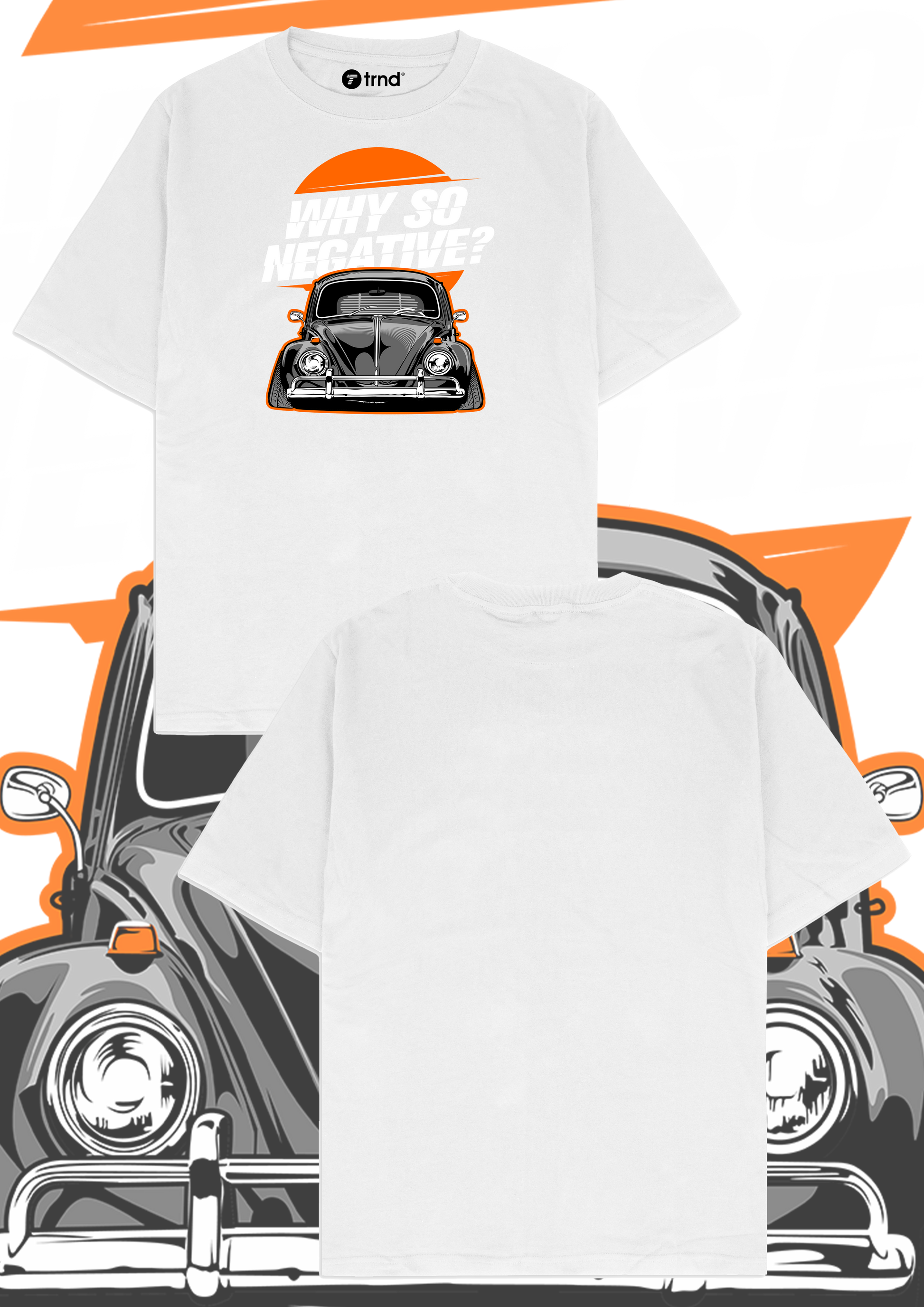 Cruise into style with a twist of humor in the Volkswagen Beetle Why So Negative? T-Shirt from Trend Streetwear. Available in crisp white and sleek black, this playful t-shirt features a classic Volkswagen Beetle graphic set against an orange sunset, paired with the witty "Why So Negative?" text, perfect for car enthusiasts and streetwear fans. Crafted from high-quality, comfortable fabric, this unisex tee blends nostalgic automotive charm with a fun, urban edge, making it ideal for casual wear, car shows, or everyday fashion. The minimalist back design keeps the focus on the eye-catching front graphic, combining vintage vibes with modern street style. Available in various sizes, this t-shirt is a must-have for anyone who loves VW classics and trendy apparel. Shop now for premium streetwear that rolls with personality.